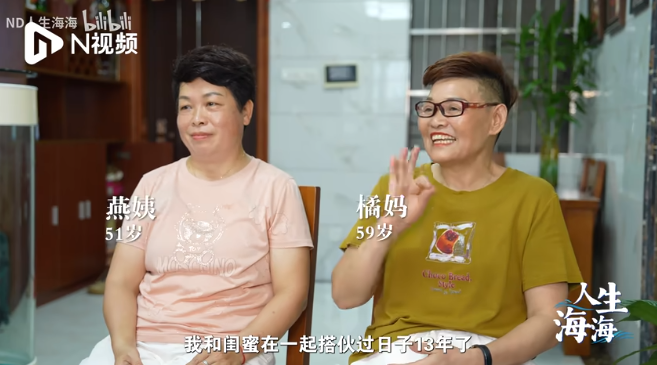59岁的梁诗椿(橘妈)和51岁的李妍(燕姨),一起搭伙过日子已有13年了。