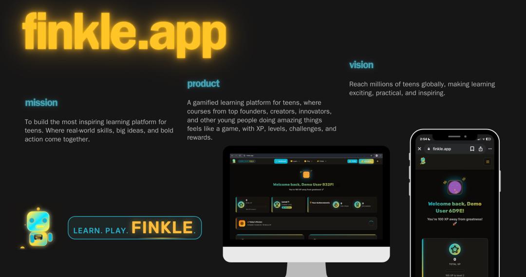现如今,他创办了一家做前端的「氛围编程」公司——Clovr,以及一款青少年的游戏化学习平台——Finkel。
