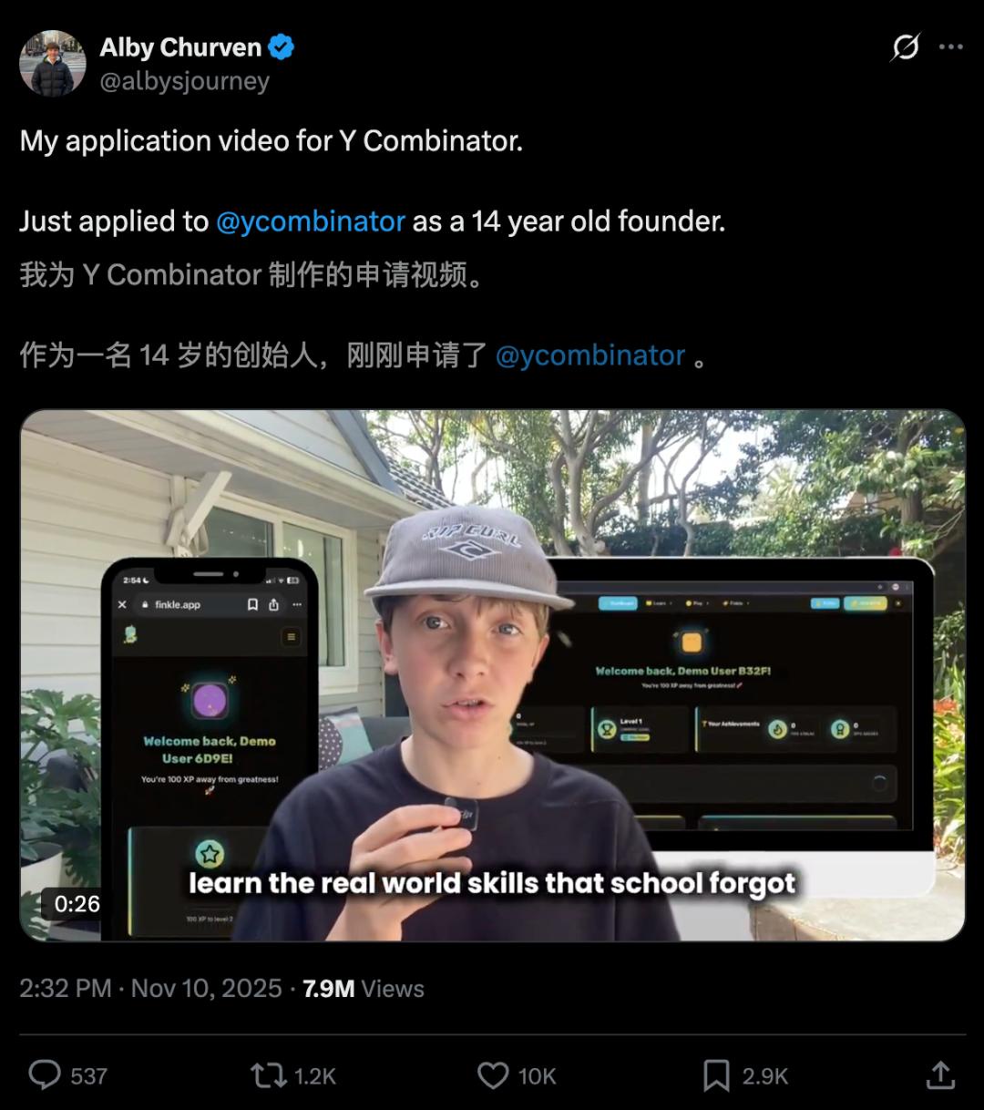 14岁创业,YC申请刷屏