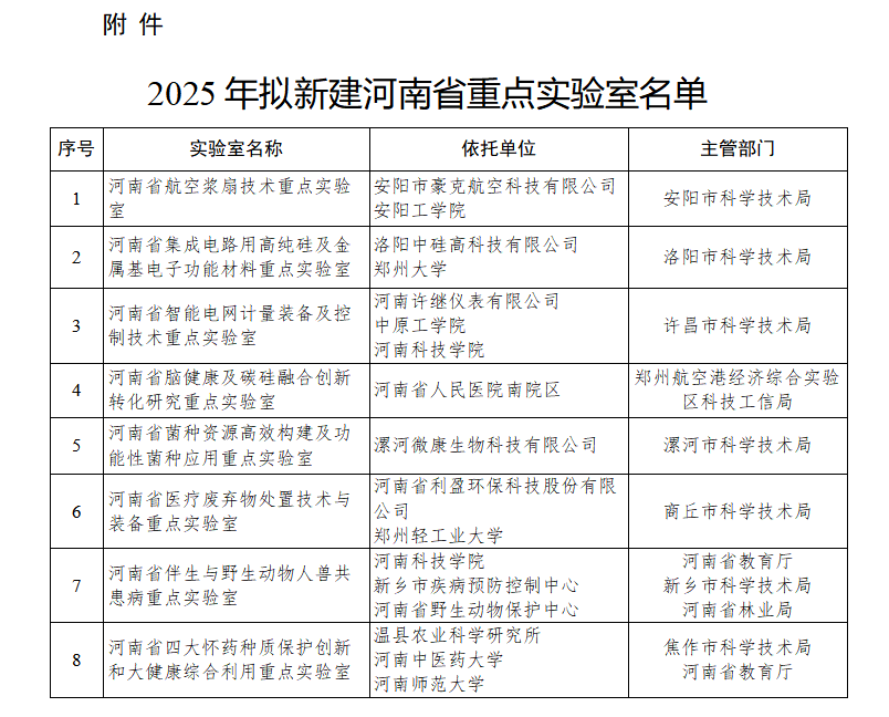 根据《河南省省级重点实验室建设与运行管理办法》《第二批省级重点实验室优化重组实施方案》相关要求,经依托单位申报、主管部门审核、专家评审、研究审议等程序,现将2025年新建河南省重点实验室名单予以公示。公示期为5个工作日,自2025年12月30日至2026年1月6日。