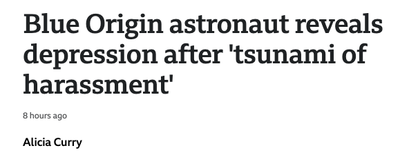 女宇航员上太空后,遭“骚扰”陷抑郁BBC