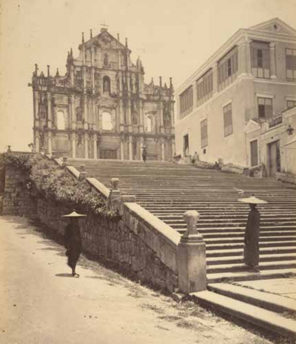 1869年,澳门大三巴牌坊及原教堂前台阶