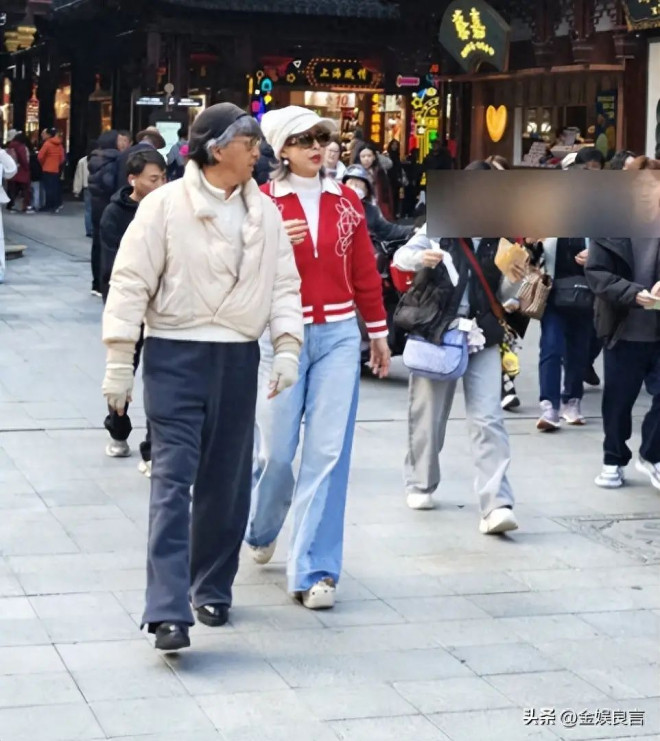这次被偶遇,正好赶上上海跨年夜前夕,豫园灯会人潮涌动,年味十足。然而,从网友分享的照片来看,两人的状态差异却相当明显。年过七旬的林子祥,穿着一件看着有些不合身的浅色短款羽绒服,搭配一条宽松的黑色裤子,整个人显得有些单薄和老气。他的头发已经完全花白,发量稀疏,额头和眼角布满了深深的皱纹,脸颊上还有不少老年斑,皮肤显得有些暗沉。精神状态也显得有些疲惫,走路步伐缓慢,腰背有些佝偻,眼神也略显无神。