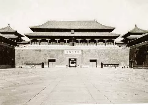 故宫午门悬挂“故宫博物院”匾额,摄于1948 年。故宫档案馆藏