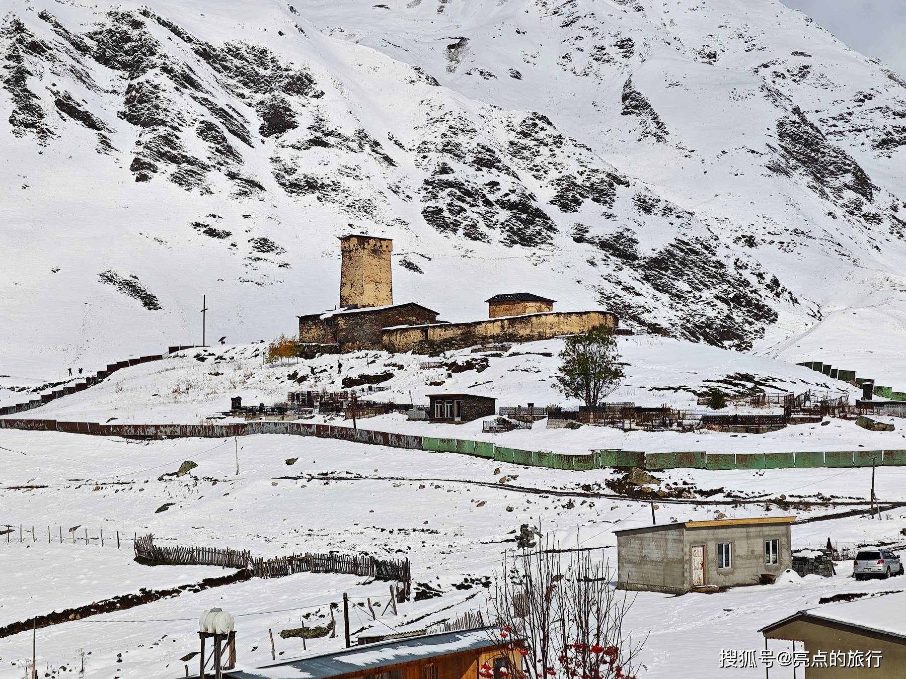 圣玛丽亚教堂外面是最好的观景台,可以俯瞰整个村庄和雪山,景色有点像国内的新疆。