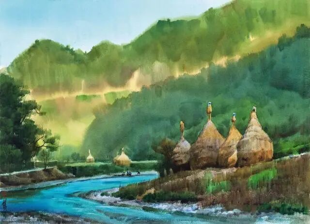真正的大师之作,滋润清透的水彩风景画,很养眼~