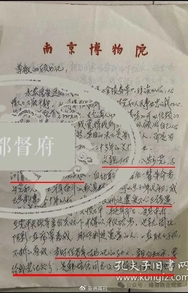 这封信还透露,徐湖平当时因为姚迁案要被一位姓孙的省委副书记处分,是当时的省委书记HPX保下了他。后来,H书记还亲自同意任命其为副院长。公开资料显示,徐湖平是在1985年被提拔为副院长,当时江苏省委书记确实是hpx。有意思的是2004年,已经担任南京博物院院长的徐湖平创立了江苏省收藏家协会,并担任第一任会长,而这位老书记担任了名誉会长。