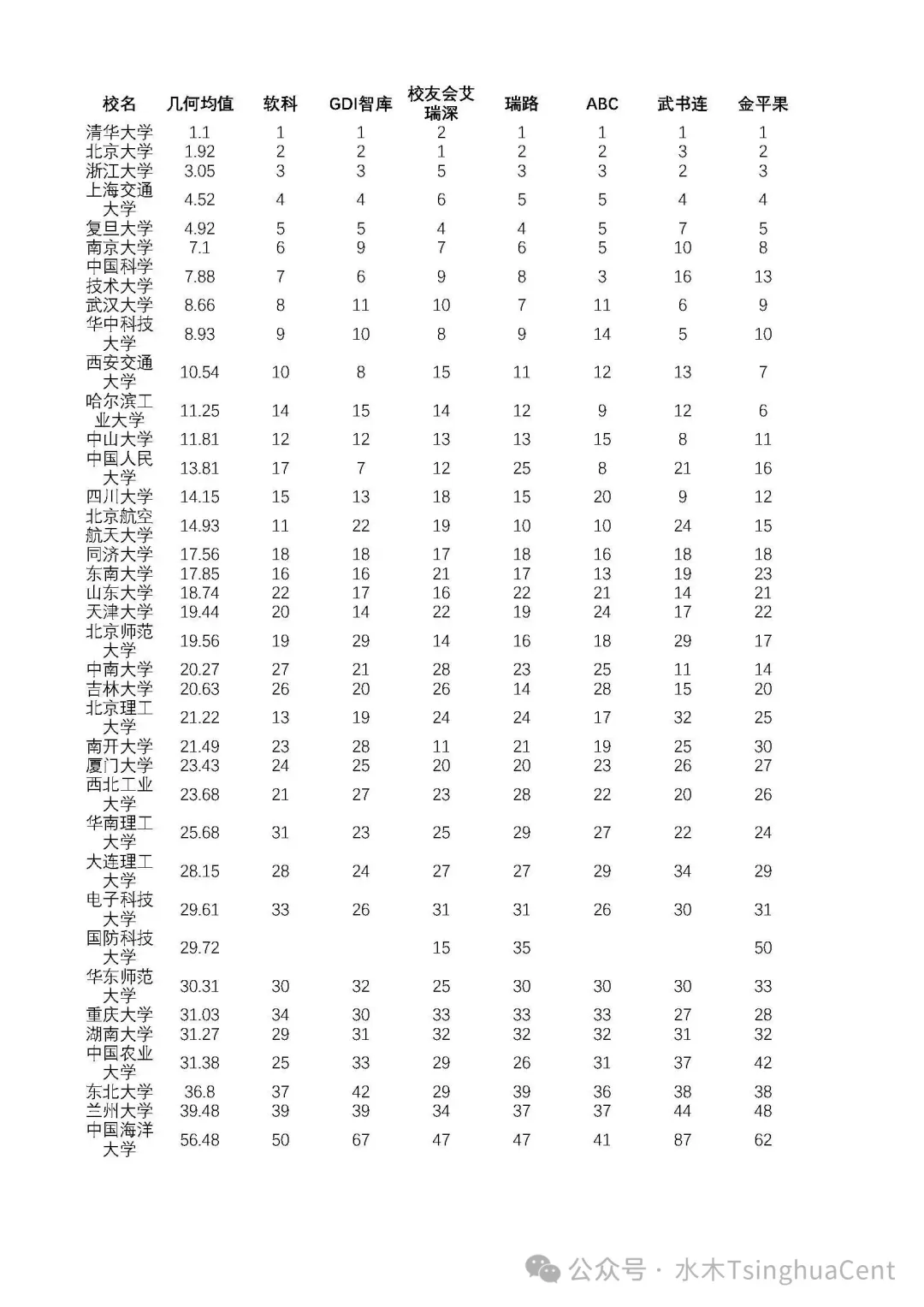 2025国内7大排行榜985高校综合排名水木TsinghuaCent