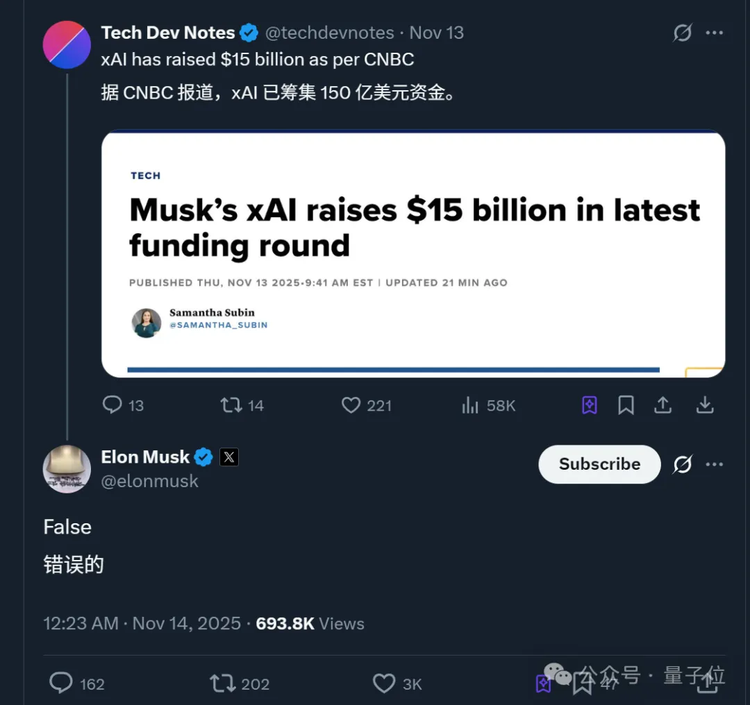 针对融到钱的相关报道,马斯克曾回应称“消息不实”,但未给出更多补充解释。