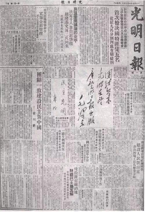 1949年6月16日,《光明日报》在北平创刊,这是一份民主党派(民盟)的机关报。