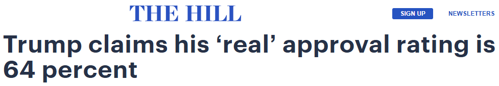 川普:“真实支持率”是64%The Hill