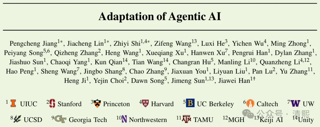 UIUC、斯坦福、普林斯顿、哈佛、伯克利等华人学者最近的论文《Adaptation of Agentic AI》【文献1】首次在机制层面,给出了一个非常清晰的解释框架: