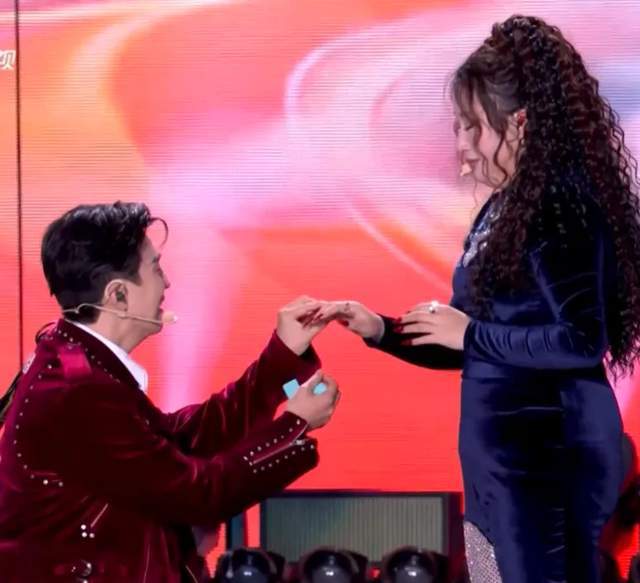 这边秀恩爱,另一边浙江卫视李川就向锤娜丽莎求婚了,李川用吉他弹奏并清唱着锤娜丽莎喜欢的歌,锤娜丽莎感动落泪,随后李川在舞台上单膝下跪向锤娜丽莎求婚,两人在舞台上拥吻,都流下了幸福的眼泪。