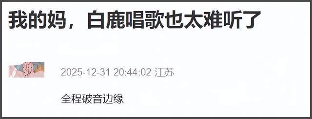 浙江台请了不少演员综艺咖表演,虽然热度够了,但实力也是真的难评。白鹿在舞台上演唱《临江仙》,全程都在破音的边缘,第一句就被网友听出跑调了。