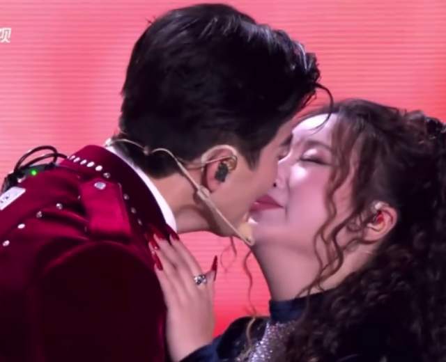 舞台还设计了“盖头纱”的环节,黄子韬和徐艺洋在头纱下热吻,这是在舞台上又办一次婚礼吗?后面两人分开徐艺洋还娇羞地打了黄子韬一下,这画面太浪漫了。