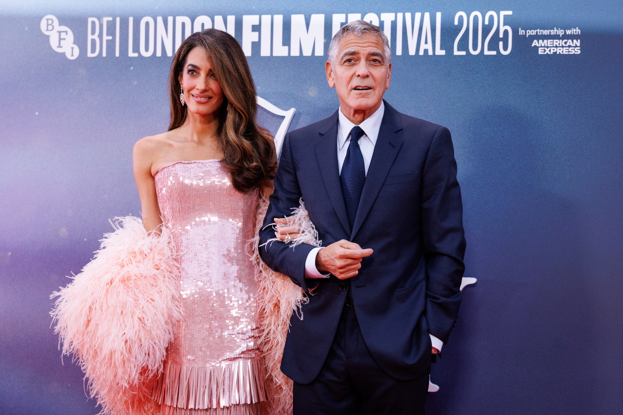 好莱坞影星乔治克隆尼(右)与妻子阿玛尔。 (欧新社)