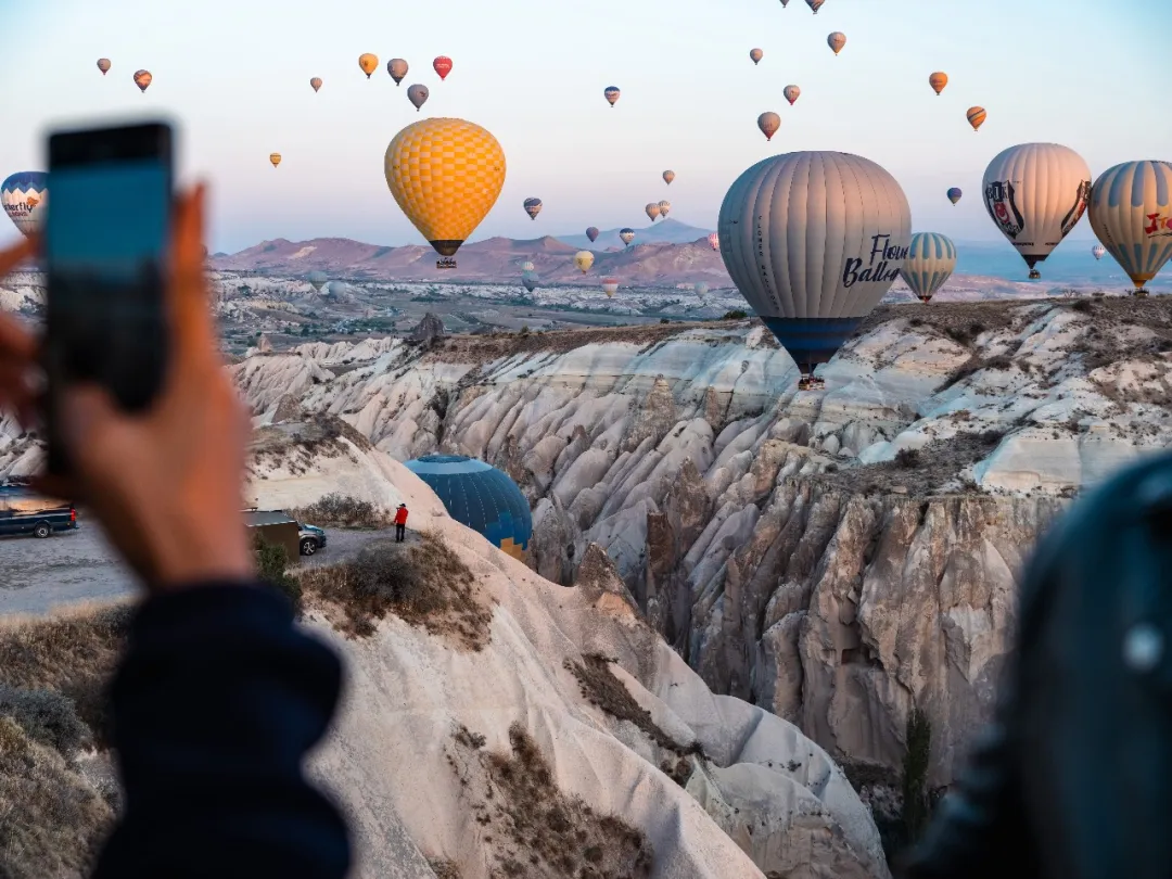这是土耳其卡帕多基亚拍摄的热气球。 新华社记者李木子摄