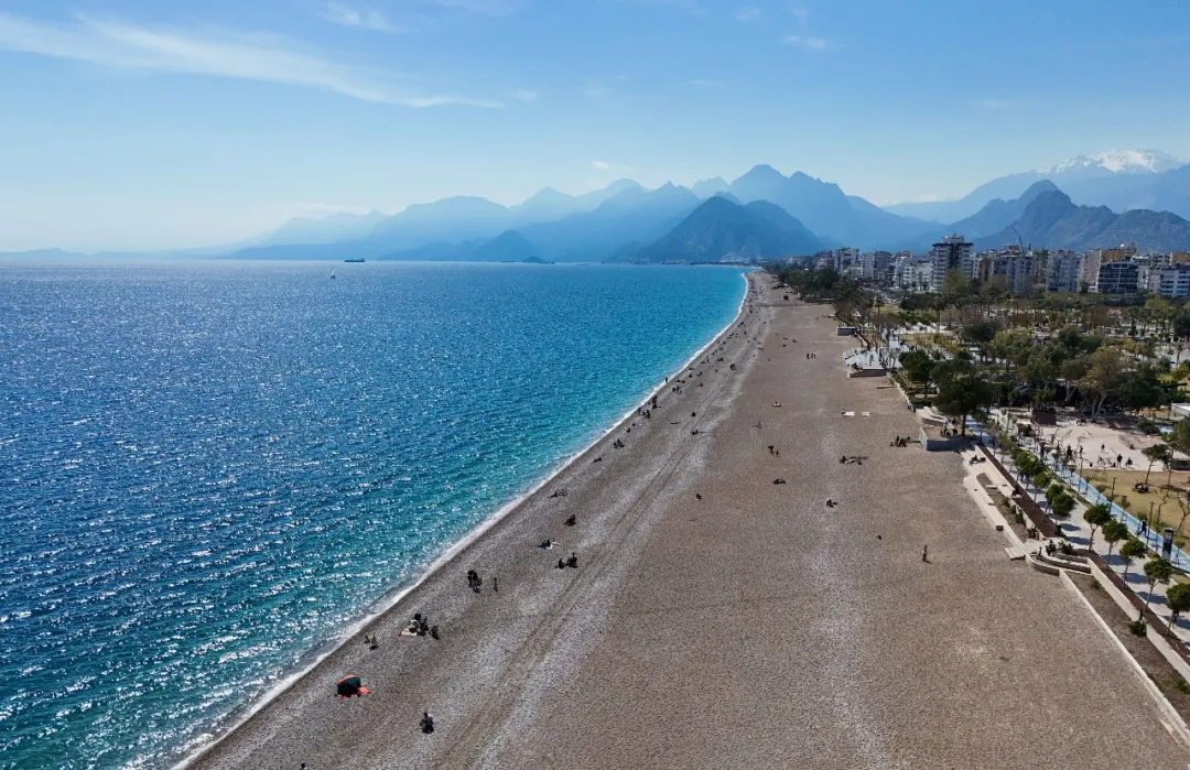 这是土耳其安塔利亚拍摄的一处沙滩(无人机照片)。 新华社记者刘磊摄