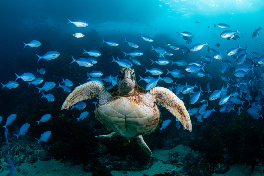作为新西兰地球科学局摄影竞赛的常胜奖得主,首席技术员Crispin Middleton在Poor Knights岛拍下了这张照片,向这只绿海龟问好。