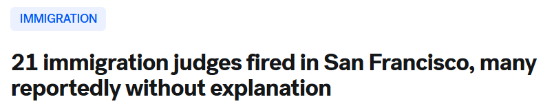 目前,在旧金山湾区,至少有21名移民法官被解雇。多名知情人士透露,许多人在被开除时没有得到任何理由或解释。