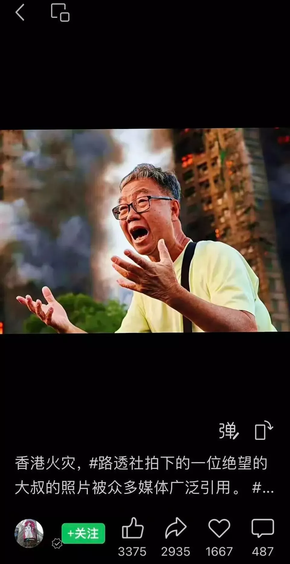 在香港大火中,这位大叔失去了他的发妻。他自己是维修水电工,出于对火患的职业警觉,他早就拆掉了自家的发泡胶板,在大厦维修时他经常朝棚网上浇水。