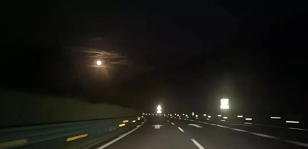 从南海边一路北上,暗夜里途经故乡钟山。在山峦的拐弯处,一圈圆月忽然跃出,似在为我照路。