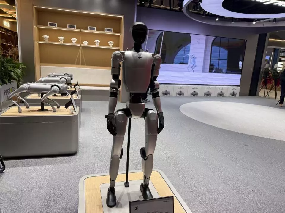 2025年年初还在春节晚会上扭“赛博秧歌”的宇树机器人,在2025年的最后一天,已经站在店里,让小女孩能够感受到冰凉的金属触感。