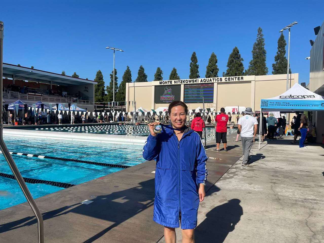 2025全美短池游泳锦标赛(SPMS Short Course Meters Championships)日前在南加州长堤市举行。华裔女选手乔钰在比赛中获3枚金牌,并打破全美100米混合泳女子40岁-49岁年龄组纪录。