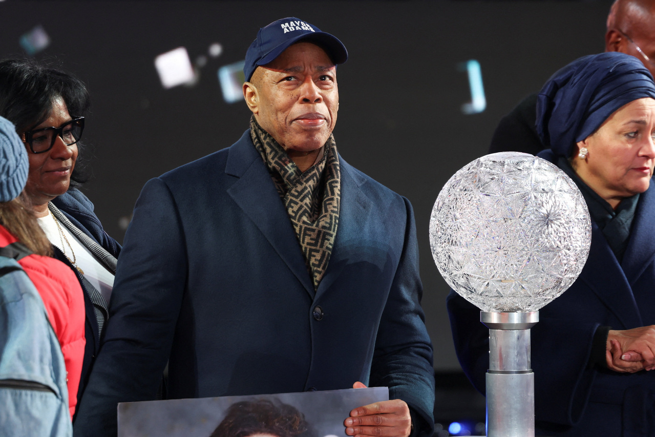 亚当斯主持任内最后一次跨年,过了午夜,就由曼达尼接棒纽约市长。(路透)