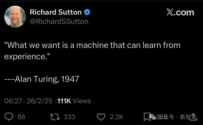 这与强化学习教父Richard S. Sutton分享的观点类似。