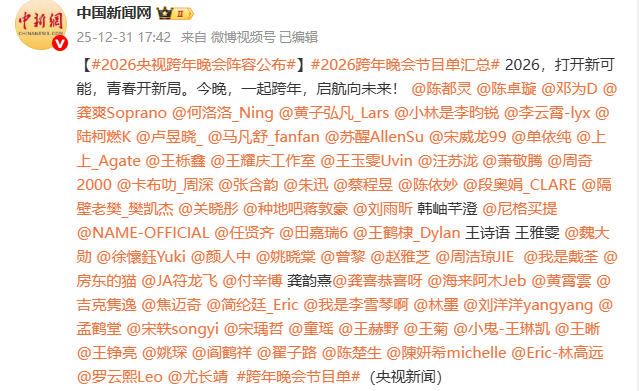 整台演出涵盖歌舞、民乐、等60余个节目,在展现各地域文化特色的同时,也致敬航天、边防、体育等领域的平凡英雄,并借助数字影像、AR等现代技术,营造出兼具仪式感与时代感的跨年氛围。