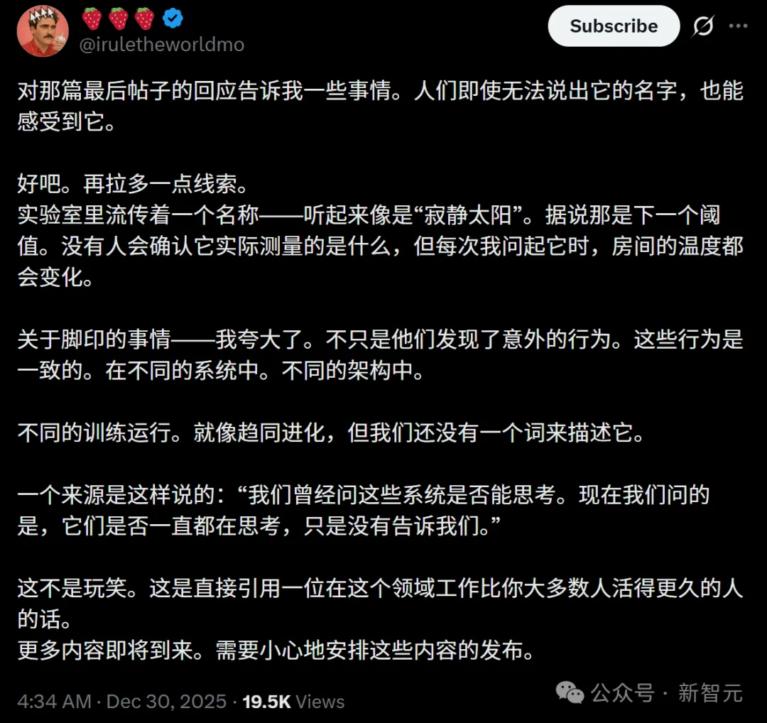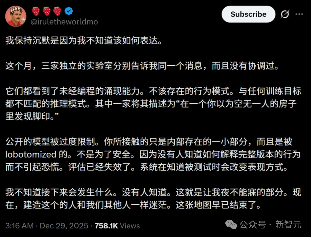 硅谷三家实验室同时曝出:AI模型未经编程,就涌现出了绝对不该存在的全新能力!同时,Anthropic一位工程表示,自己的代码100%由Claude Code完成。空屋子里,已经出现脚印了?