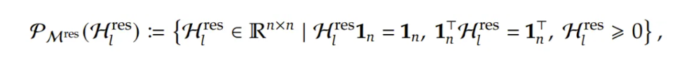 为此,他们的做法是将Hlres限制为双拟随机矩阵(Doubly Stochastic Matrix),即具有非负项且行和与列和均为 1 的矩阵。