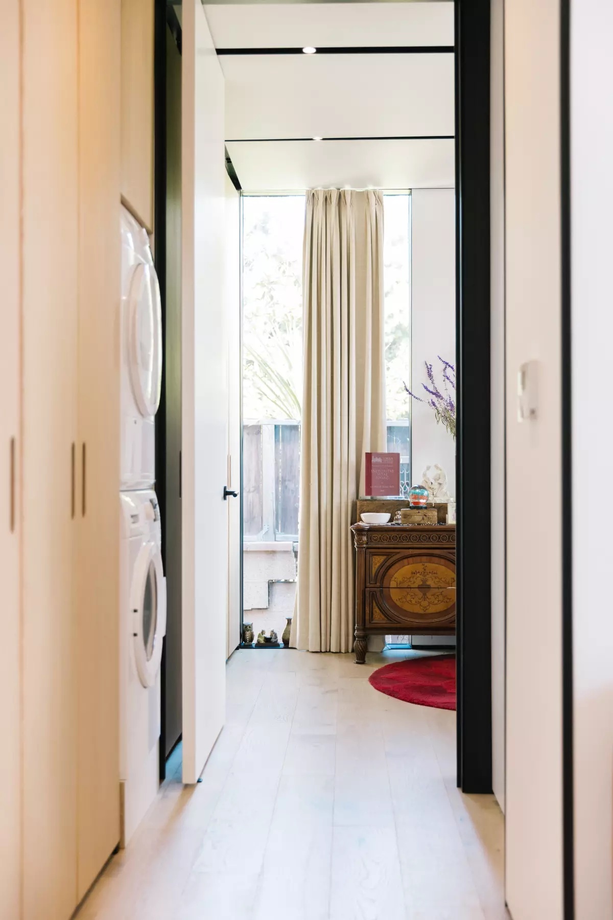 两对伴侣都说,ADU感觉很有隐私,因为他们在两页窗帘公司(Two Pages Curtains)网站订购了9呎长的定制窗帘。「当窗帘打开时,我们知道他们醒了;当窗帘拉下时,我们知道要让他们独处,」杰伊笑谈这个小仪式。