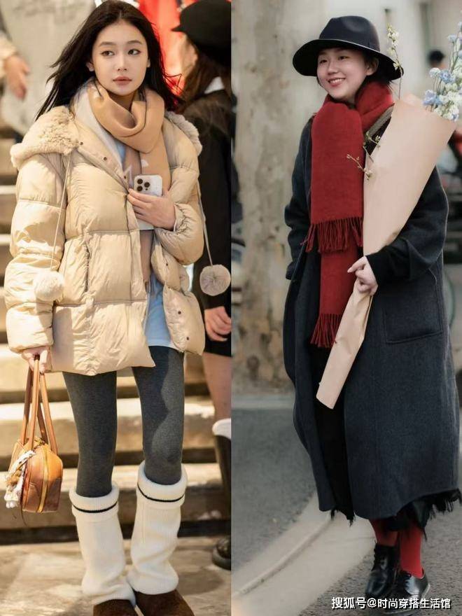 并且在选择服装时,要注意整体的轮廓感的塑造,像冬日里大家喜欢穿棉服或者是羽绒服,这些服装往往也会产生比较强烈的臃肿感,我们在款式方面考虑这种有线条感和轮廓感的服装,可以通过这种纵向的线条去延长我们的身材曲线,即便是脖子被围巾,脚踝被袜子包裹着,也无需担心显得臃肿,反而可以让我们的造型保持很强的保暖性。