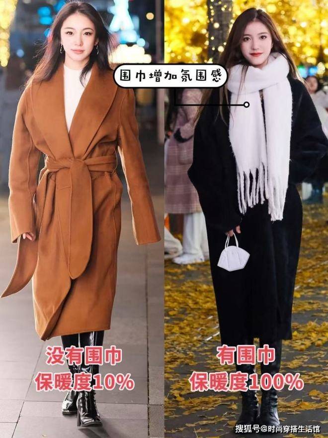 ⑵戴围巾vs不戴围巾,时髦和保暖性都有差别