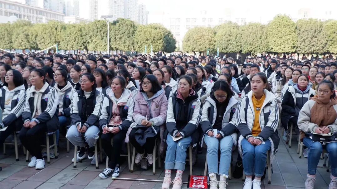 2019年,蔡天新在云南昭通给中学生作讲座的现场。受访者供图