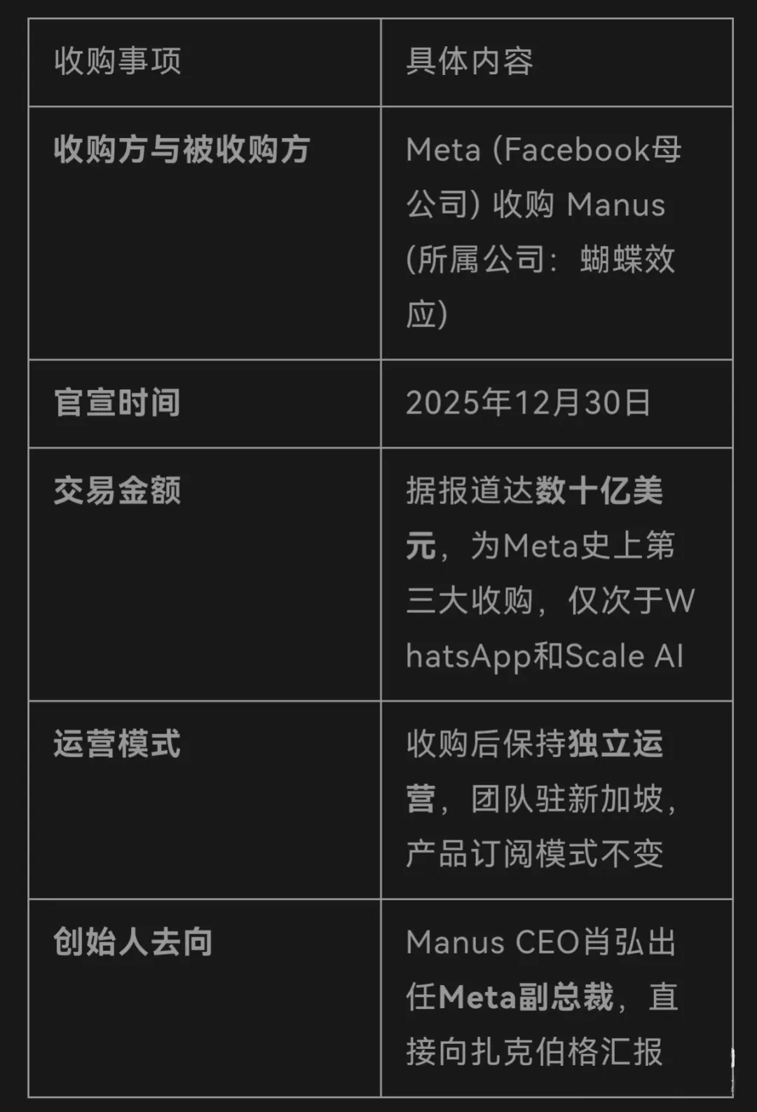 2023年初,当Manus AI的创始团队在旧金山一间车库改造的办公室里敲下第一行代码时,他们可能未曾想到,十个月后,他们的公司将带着尚未完全成熟的产品,被Meta以数十亿美元的天价收购。