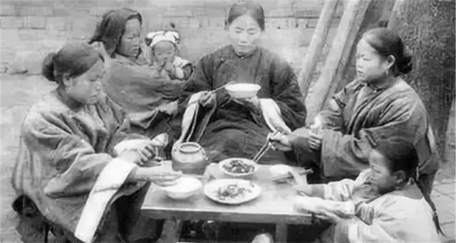 在晚清时期,因为列强们侵略,朝廷签订了许多丧权辱国的条约。就算是乡下的地主们的生活也不是那么的快活!(图为这一个地主家庭,吃饱饭看起来没有问题,不过一桌子人也就两个菜。)