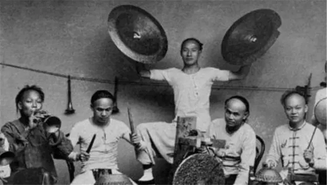 戏班子,吹拉弹唱样样精通,看上去个个生龙活虎。优秀的班组多被王公大臣请到府上助兴,连宫里赶上喜庆事,也会叫戏班子来上几段。但是他们在当时的地位确实非常的低下。如果不是没有办法,在当时是没人愿意从事这个行业的!(图为晚清的一个戏班子的合影)