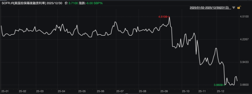 纽约联储数据显示,以担保隔夜融资利率(SOFR)衡量的回购利率近日攀升,周一触及3.77%的两周多高点,随后回落至周二的3.71%。