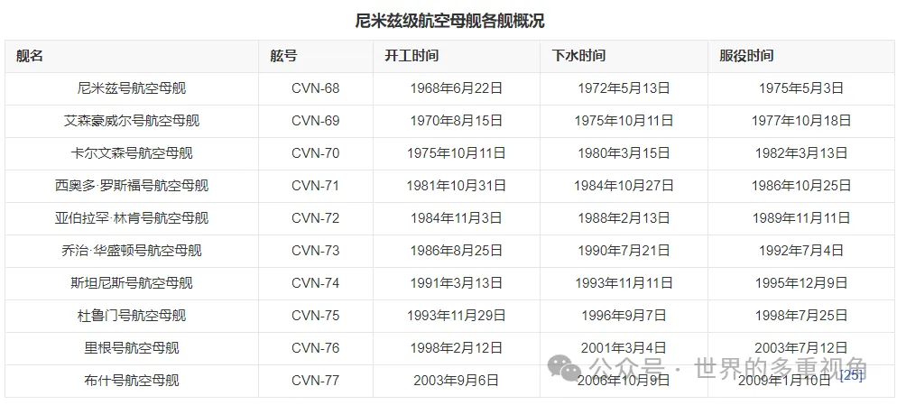 10尼米兹级的建造进度,没有出现下水一艘就立马开工下一艘的情况。
