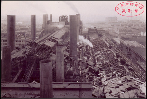 遭到轰炸之后的杨浦发电厂
