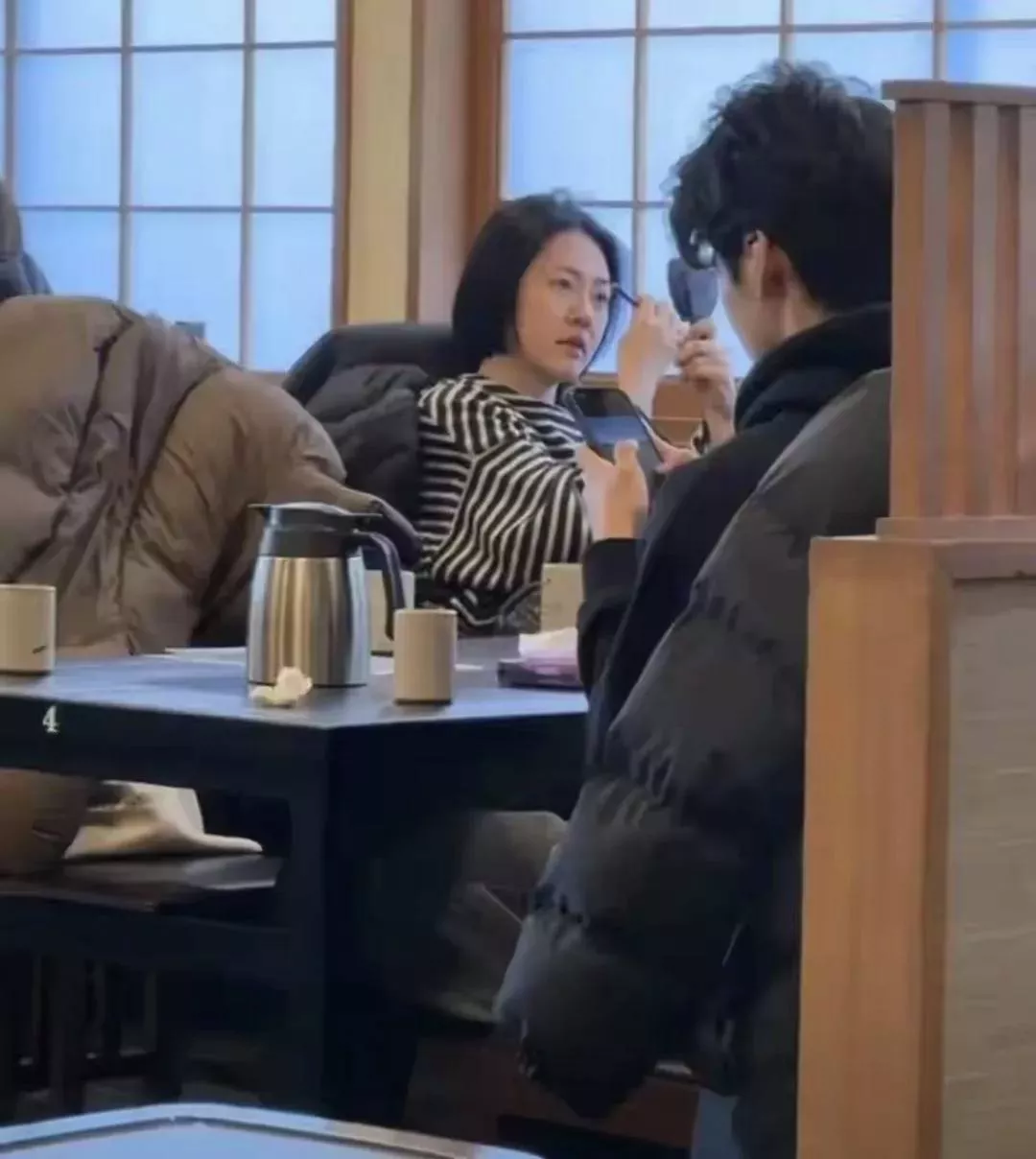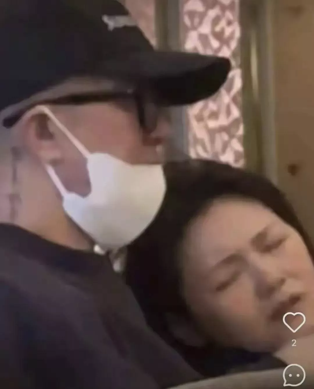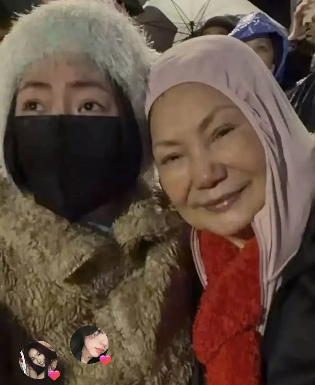 第二张是小S和S妈相互依偎,S妈戴着帽子,胸前是红色围脖,显得苍老且憔悴,眼眶中依稀有泪光闪动。