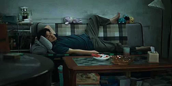 ——葆树在美云家沙发躺着,一只脚架在沙发靠背上,啥人会这姿势?只有在自己家才这么放肆吧?