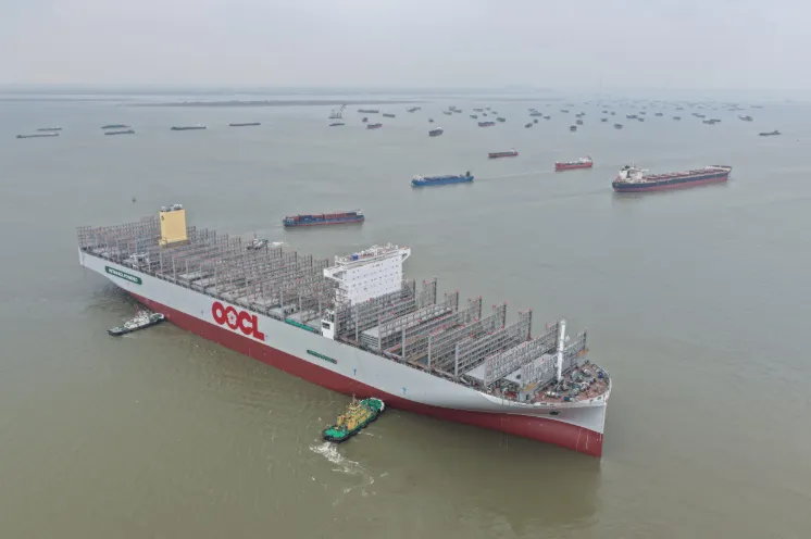 本次下水的24000标箱甲醇双燃料集装箱船,由南通中远海运川崎船舶工程有限公司自主研发设计。该船采用先进的甲醇双燃料动力系统,兼具高效能与低排放特性,在全程运营中可实现“碳中和”目标。