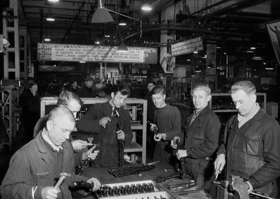 除此以外,在工业弯道超车期间,苏联各工厂实行军事化管理,主要包括非常严格的考勤和绩效。别以为和现在的打卡上下班一样,从1932年开始,迟到20分钟以上,有可能会被解雇、失去住房,旷工1天以上,甚至会被判刑。