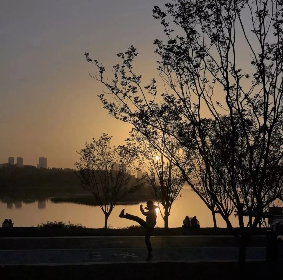 这张照片是我 31 岁生日那天拍的。那天是一个周末,白天逛街回家后,看到阳光照进了客厅,所以临时起意,和老婆去兴隆湖追了一场日落,然后换上白天逛街时反复对比后新买的跑步短裤,用非常舒适的状态在湖边跑了3.1km。太阳刚刚落下,微风习习,在一天中最迷人的蓝调时刻,她坐在湖边的草地上吹风,我在不远处跑步。这个在夕阳下,尝试像小时候一样,把腿踢过头顶的小伙子,就是我。这一天是他刚满18岁的第十三年整。他没有把腿踢过头顶,但是他也没有跌倒。他的老婆就是他18岁时的女朋友。