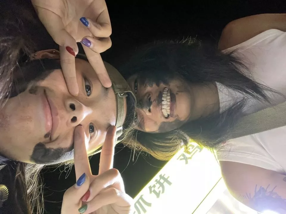 今年暑假瞒着家里一个人偷偷去云南找朋友玩,本来打算玩个半个月就回家,结果发生了车祸(人生第一次车祸),不敢回家,在那儿又呆了半个月,养伤期间,去了大理的火把节,那天晚上,跟朋友肚子饿了出去找夜间小摊觅食,结果出门到了一条街上被摸了一脸火把灰,两个人合了张照,那个时候很快乐,已经忘了出车祸的痛。