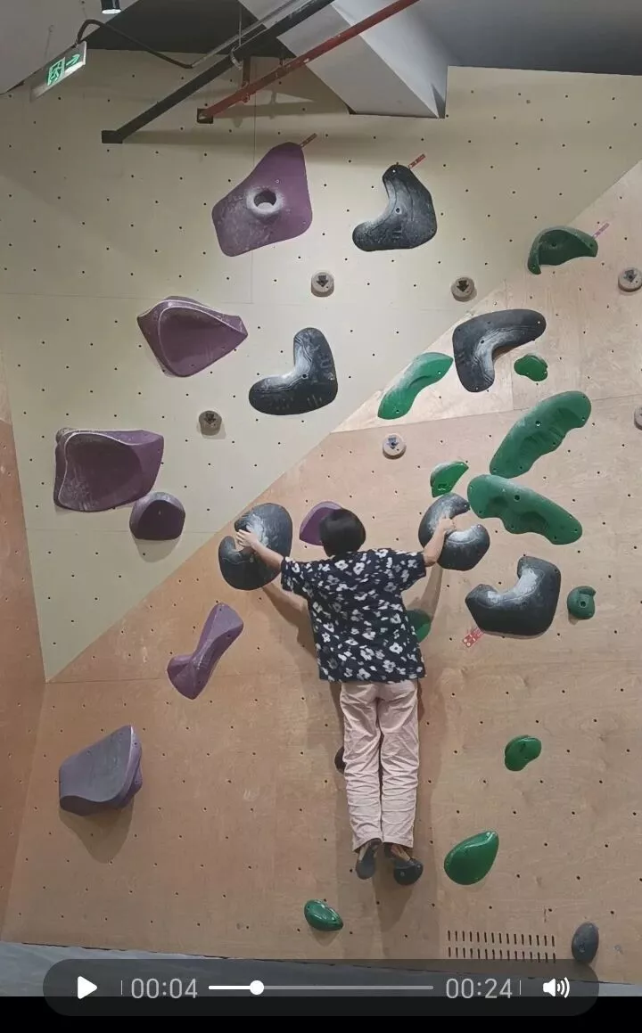 印象最深的,是一个「松动」的瞬间!10月,我刚学攀岩没多久,有一天去岩馆的新手区爬墙。因为我身高矮,手短,这条黑色的线我一直过不了,左手够不到左边那个大黑点,试了一整个晚上都没办法够到左边的点。直到我忽然不知道为什么松开了右手,左手一下子就够到了目标黑点,接着就是很轻易地爬到顶。那一瞬间我真正爱上了这个运动,「松动」,才能移动。